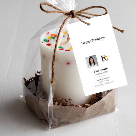 Avoid the awkward silence! Celebrate your client’s birthday with a small gift that keeps you top-of-mind for their next move or referral. Just add one of our custom tags and deliver with a smile. (Gift items sold separately.)